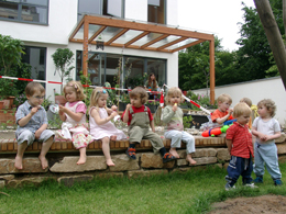 Die Baufamilien haben als GBR das Grundstück gekauft und das Gebäude in der klassischen Rolle -Bauherr-Architekt-ausf. Firmen gebaut. Der Aussenraum (Gartenfläche) wird gemeinschaftlich genutzt und unterhalten |